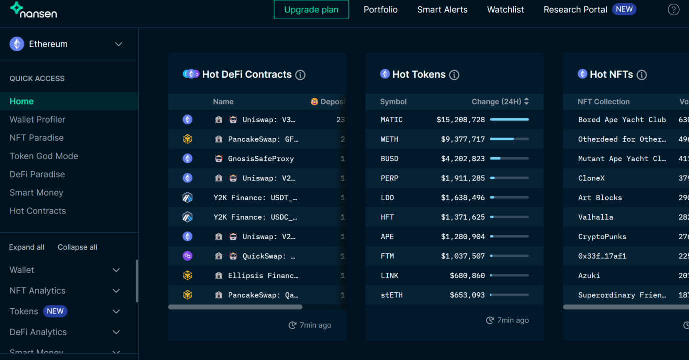 Nansen通过标记加密钱包来增强实时链上数据的信号。目前Nansen已标记了上亿个钱包,包括V神及一些基金等的公开地址,还有很多拥有巨大资金体量的匿名地址。散户和机构投资者都使用 Nansen 来发现交易机会。该平台目前支持Ethereum、Polygon、BNB Chain、Avalanche、Fantom、Arbitrum、Ronin、Celo等公链。