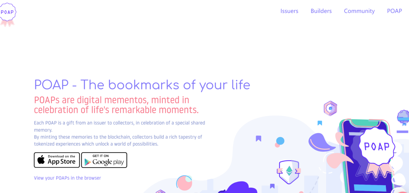 POAP,即“Proof-Of-Attendance Protocol(出席证明协议)”,通过分发加密徽章的机来记录和纪念特定事件的发生,由此生成参与者的在场凭证。