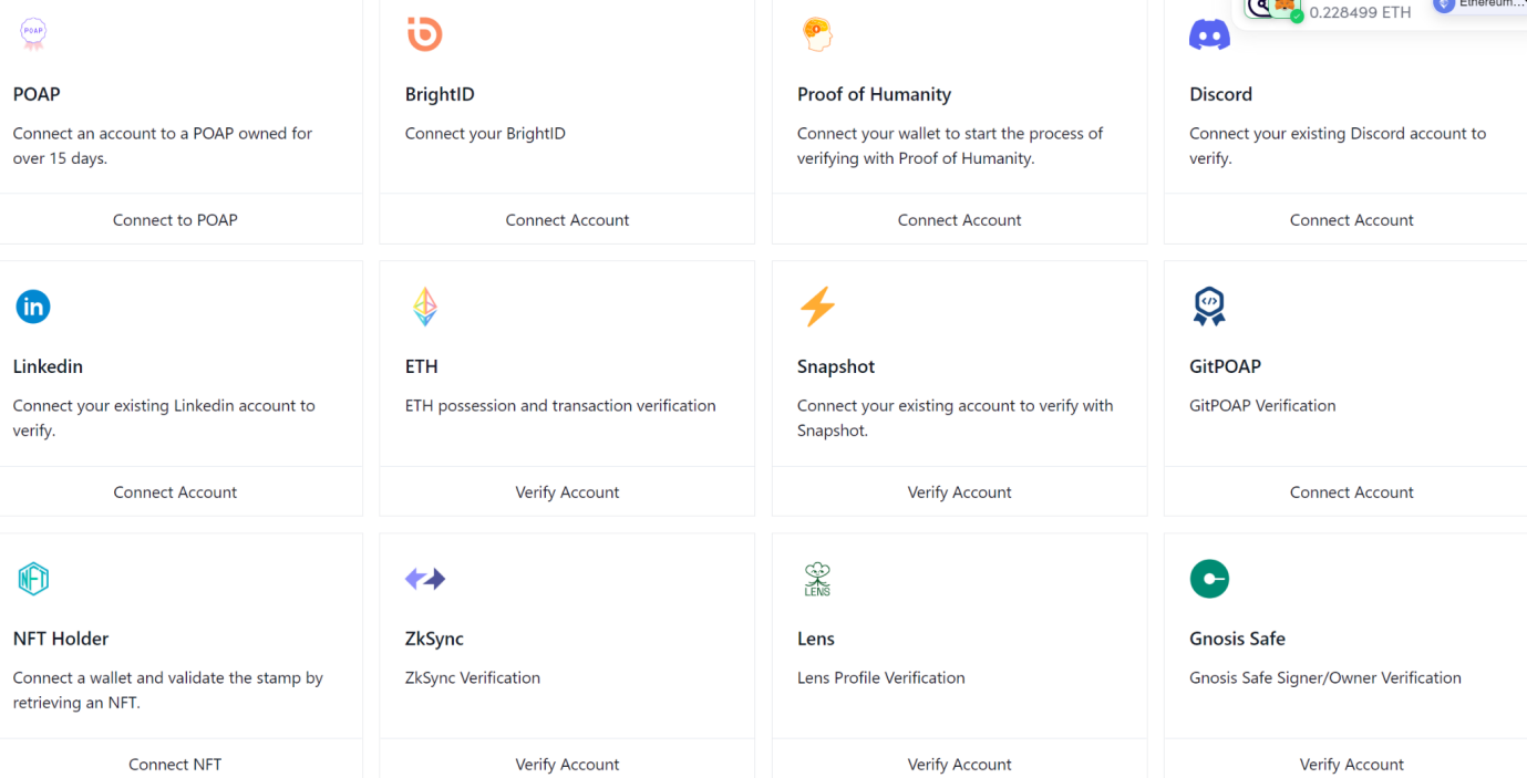 目前Gitcoin Passport聚合的身份验证项目或平台包括: