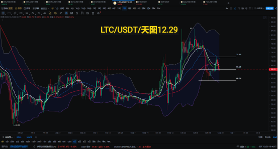 LTC天图技术走势;昨开70.73/高71.13/低67.71/收68.62/跌幅2.98%下跌2.11%振幅4.84%/技术走势分析:LTC昨日价格震荡收跌收一根小阴线形态;看多空角度都有依据;若由85美元跌至61止跌反弹至72受阻为空头思路;由61反弹至72受阻回踩66那么可以适当在多头思路中;目前66-65为近期较为重要的多空分水岭区域;止跌上看72附近;破位65将下行测试61;保持中立态度!