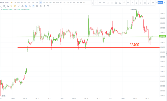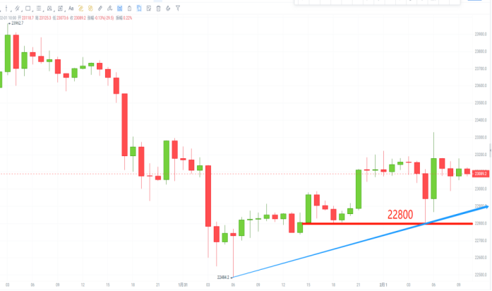 后期走势小幅回调未下破22400一线支撑便再次拉升,最高抵达23330一线。
