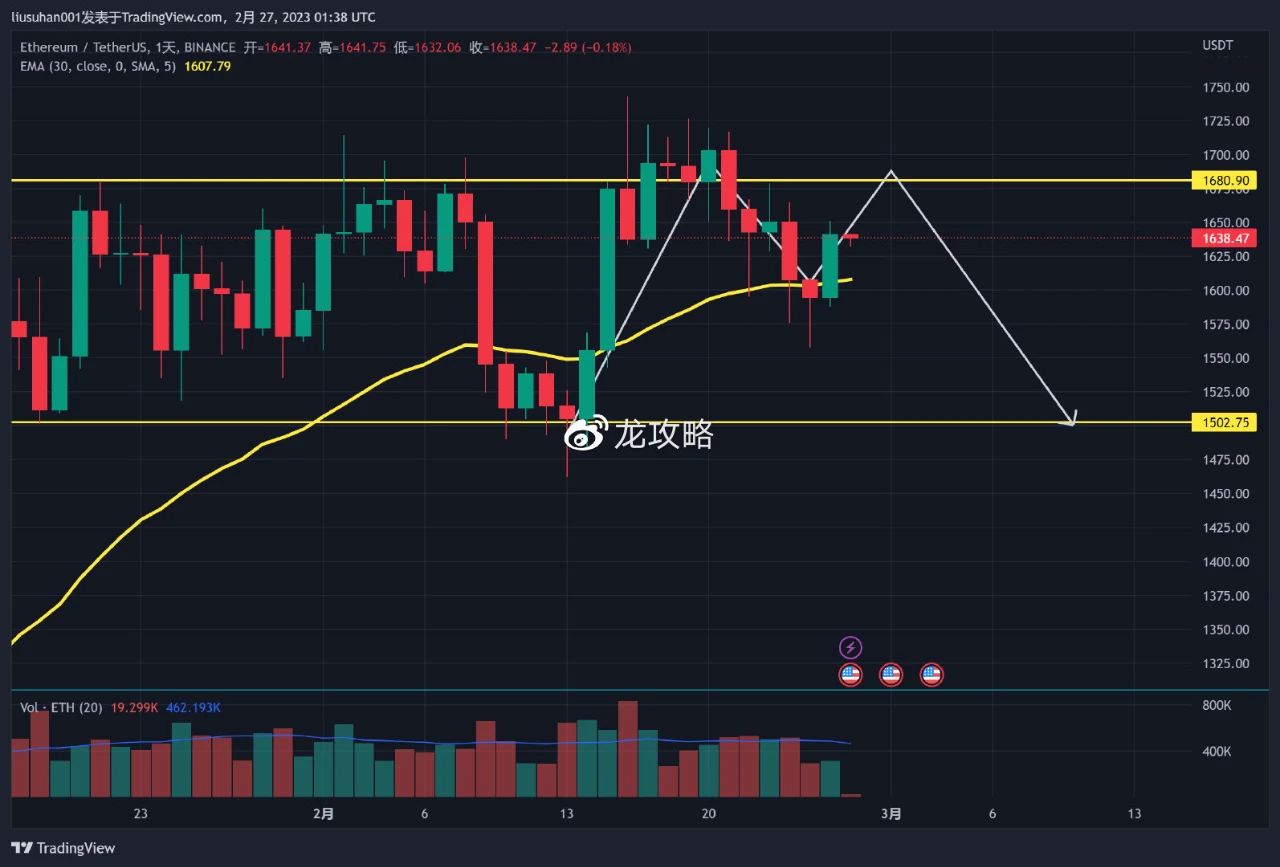 今天是2月27日,距离2月份结束还有不到两天的时间,星期一,今天的BTC/ETH行情解读内容比较难,因为考虑的因素较多,影响市场走势的不确定性因素也有很多。同时,也要考虑到同学们对行情好不容易点燃起来的热情被一泡尿浇灭后的过度悲观情绪影响后续的机会把握,从而影响交易心态而在需要进场的时候踏空。