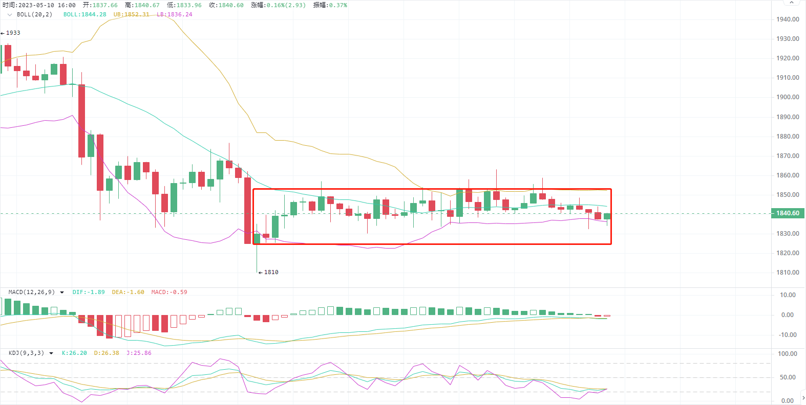 4小时线,截止4点,行情已经墨迹了2天,在30个点位内来回震荡,日级别线昨日形成十字星,今天目前为止也差不多。昨天提到过,目前的形式不要着急,各种指标都趋于平行,暴风雨来临前都会比较平静,行情不动也是为了晚间的CPI做准备,周初到目前都是弱势形态,行情如果再晚间发生变盘,就顺势而为。