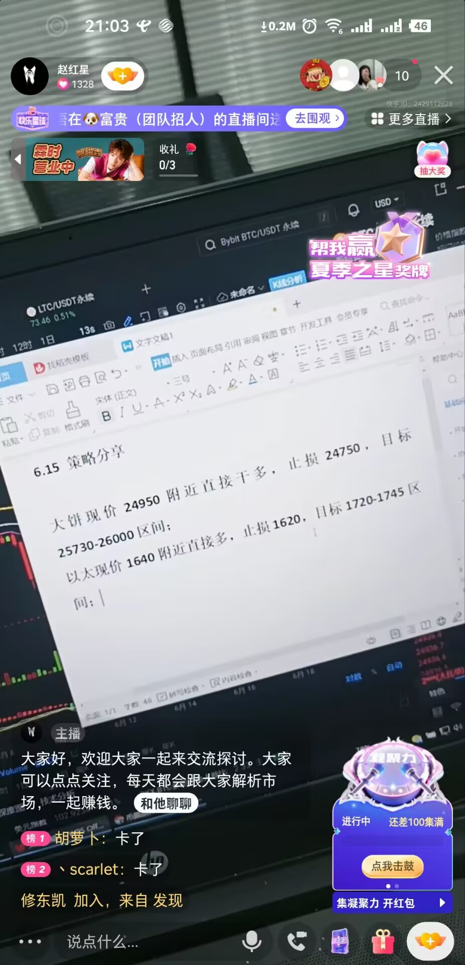昨日我们说大饼短线会有反弹,但写文章的时候因为行情还没下跌到位,多单进场需要等行情到达24600附近去进,以太同步大饼的多单进场,昨日大饼日内是给出了新的下跌,最低点到达24777位置,跌破了一下前面下跌形成的低点,以太也是跟随着大饼走一波小幅下跌到达1625,没有跌破前面低点,这就是我们说的大饼日内下跌没到位,以太如果提前布局,就很容易被扫出来的意思,虽然就算布局了多,也不会被扫,但这种情况我们是需要去做预防的,在昨日行情再次下跌低点后,虽然没有到达24600位置,但4小时收线后,线下是布局了短线的多单的,还有直播间也是布局了多的,快手 赵红星 就可以看到每天直播内容,跟上的朋友那这波短线反弹是成功抓到,目前行情还未反弹到位,等待反弹到位,我们再去布局空;