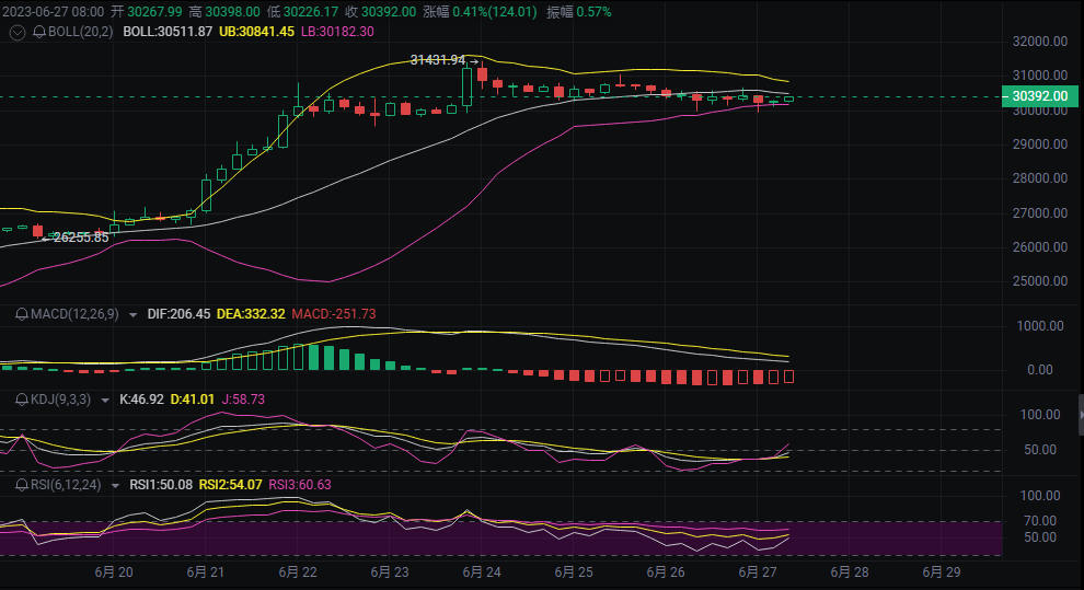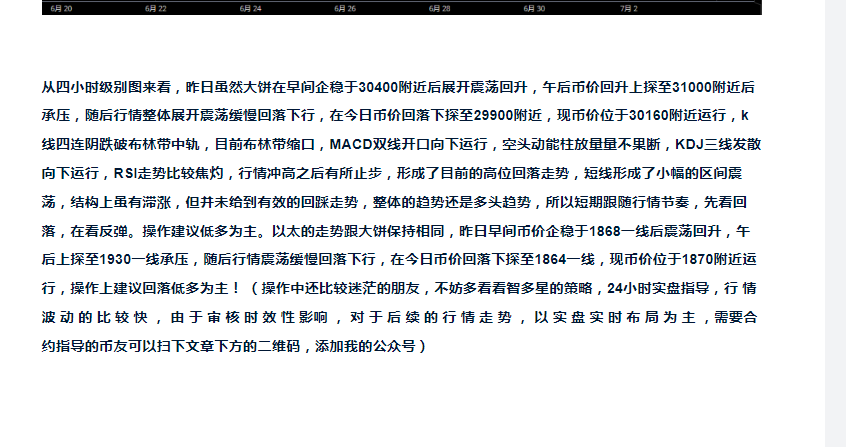 30000-30200区域多单进场,目标看30650,破位看31000,不破参考30600区域做空