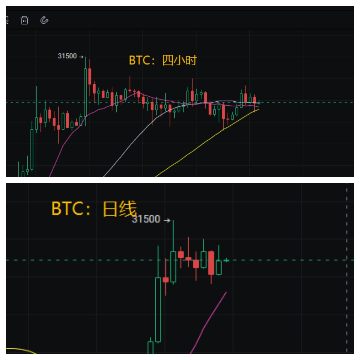 BTC:支撑区间:29400~29600;压力区间:34600~35900