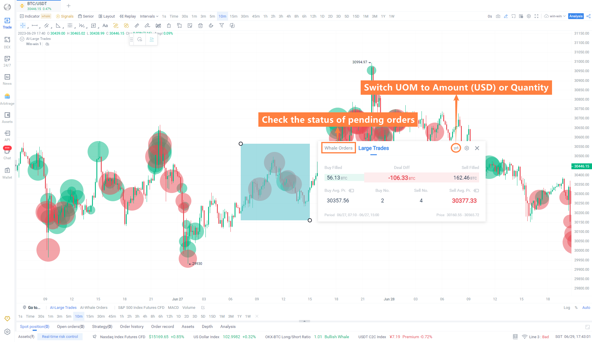 (2) Switch to "Whale Orders" to view large orders within the same statistical range.