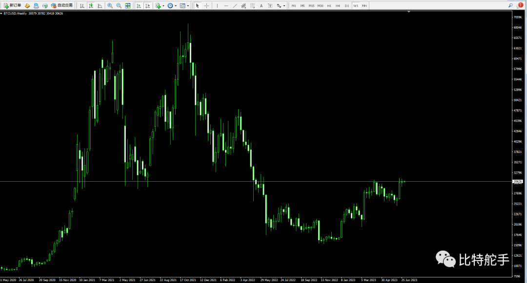 市场流动性的不足,以及价格未按照预期有强势的延续,料后市币价还将有回踩确认,价格还将有反复。这一点也不是此刻才看见,上周我们就已经有反复的博弈。上周我们反复在31000上下或者之上进场空单,止损在新高。盘中反复都是有些许利润的。流动性不足波动太小,也未能有较大的盈利空间。