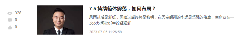 文章编辑时间2023.7.6 09:41分,所有观点不构成任何投资建议!仅供学习交流。