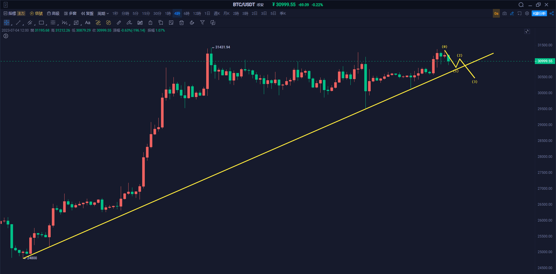 7/06日线箱体内潜在M头,回调尚未结束,关注是否到达28600