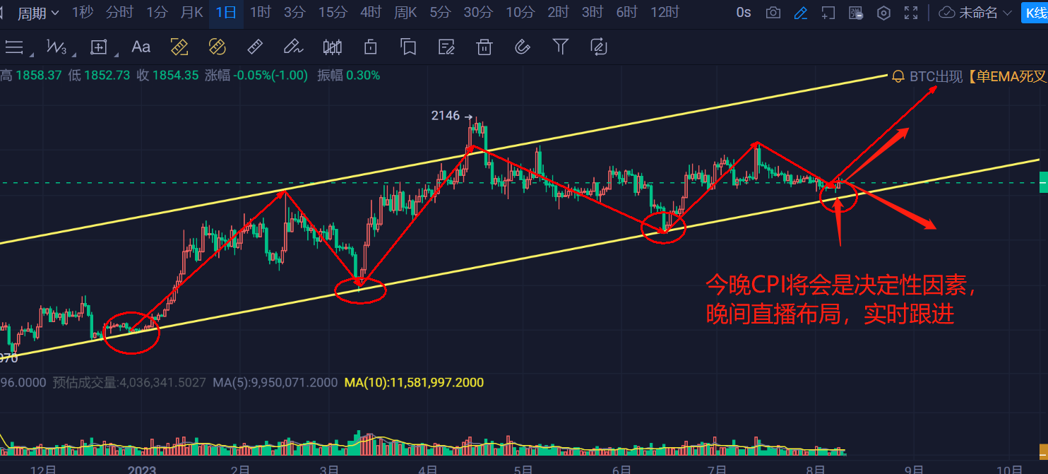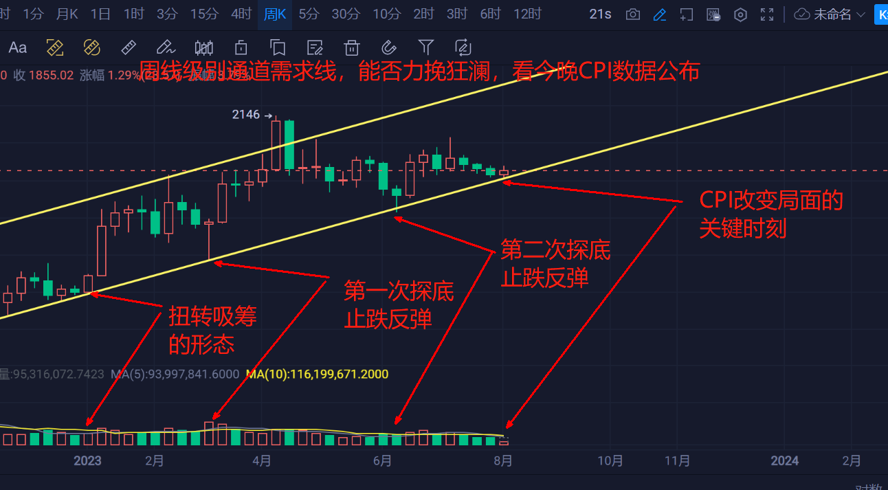 The weekly/daily/four-hour trend shows the path of this round of rise. Currently, the market has reached the lower channel line. At this crucial moment, whether the August CPI can act as a booster is a crucial factor!