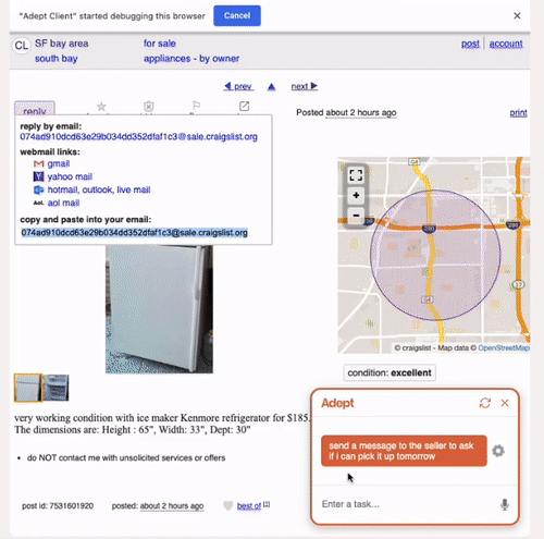 In addition to single software, the ACT-1 model can also perform operations across software, automatically combining multiple tools according to the task. For example, if you want to search for an item on a second-hand platform, after automatically filtering out the desired items, it can automatically open your email and write and send the email for you.