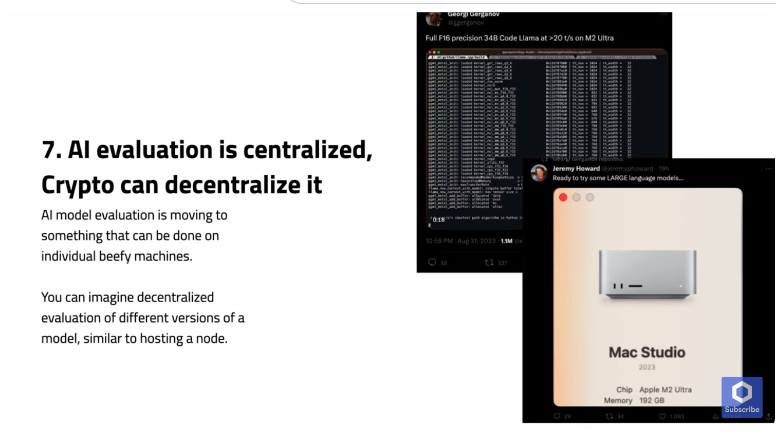 AI evaluation is centralized, and encryption* can decentralize** it.* Now you can evaluate LLama 2 on Mac studio. This actually means that we can approach a state where everyone who trains models can run them on powerful hardware, similar to running a Solana node.