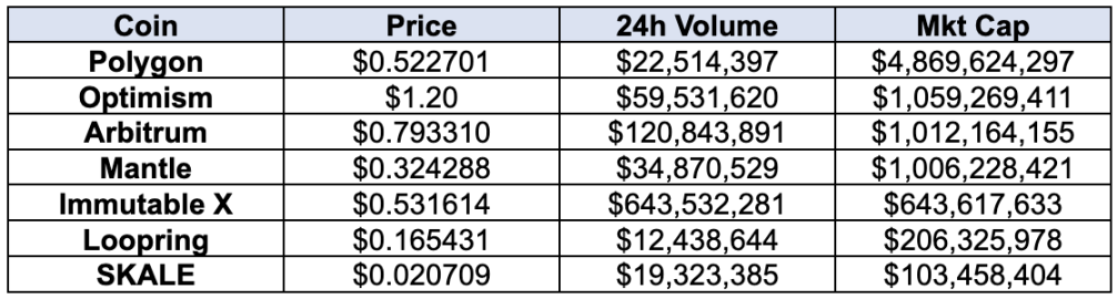 Table 1. Status of the top 7 Layer 2 projects by market value (Source: coinmarketcap, Oct.17, 2023)