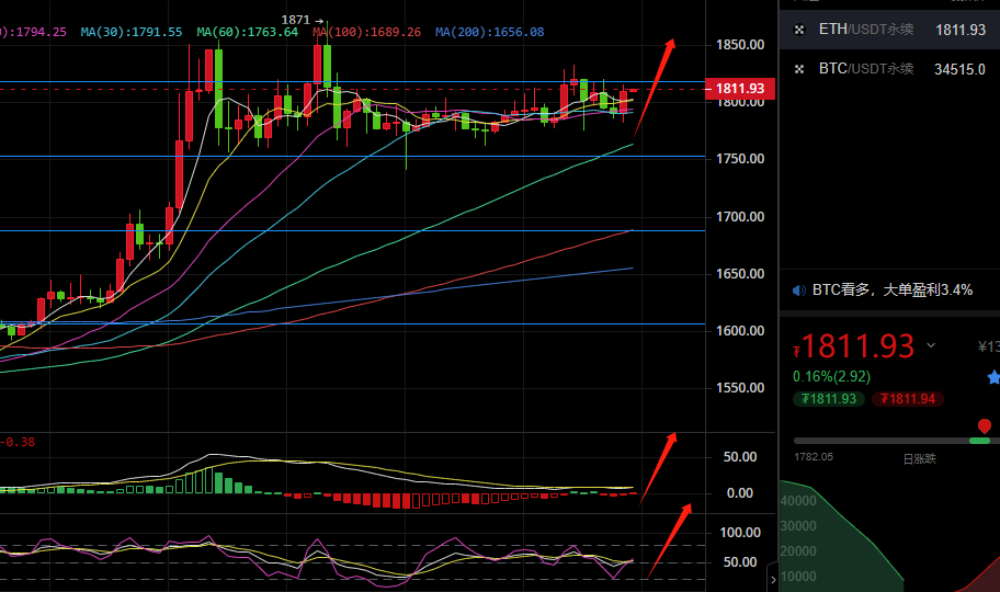 而对于目前的以太坊的行情走势,目前也是处于下方支撑逐步的进行上移的状态,下方的支撑还是比较的明显,对于日内的行情走势而言,依旧是维持好目前的行情趋势支撑等待后续的筑底突破就可以了,下方的支撑晚间依旧是在1770-1760附近的位置,回撤下方的支撑可以继续进行多单的介入,后续等待筑底以后再来继续进行上看就行,上方的目标压力在1860附近的位置,顺势走好区间等待后续突破就行,激进的朋友目前1811就可以进行多单的介入,后续等待突破,回踩下方的支撑可以进行补仓,后续等待上行突破就好!