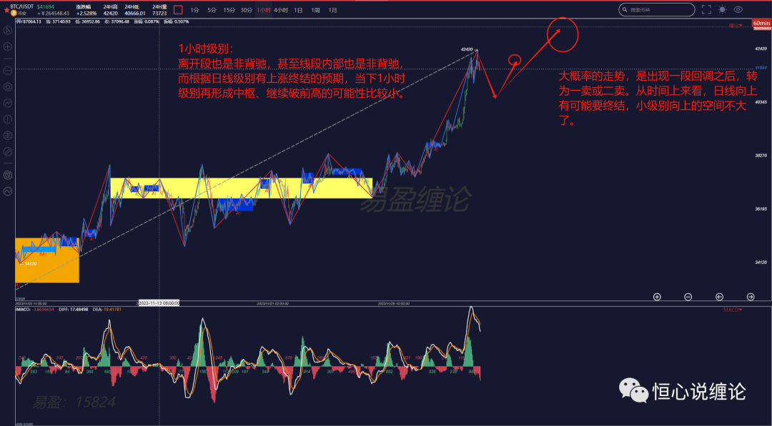 Considering the imminent signal of the end of the uptrend at the daily level and the current trend at the 1-hour level, there is a high probability of a high-level oscillation followed by a selling point, which may be the resonant selling point at the daily level.