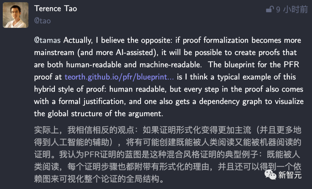 Terence Tao stated that, on the contrary, if the formalization of proofs becomes more mainstream and receives more AI assistance, it is entirely possible to create proofs that are both readable by humans and understandable by machines.