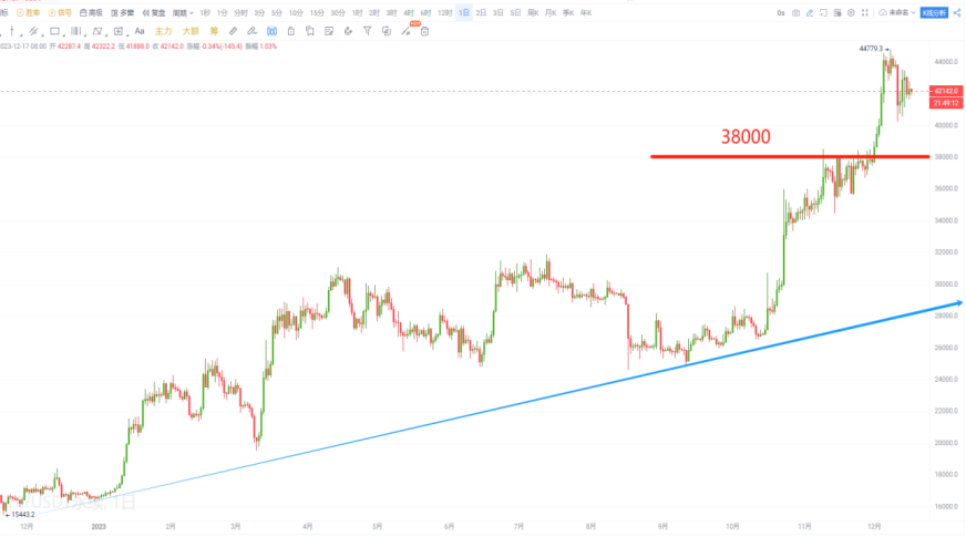 - Daily Chart: After breaking above the 38000 level, there was a slight pullback. If the pullback does not break, there is still an upward trend.