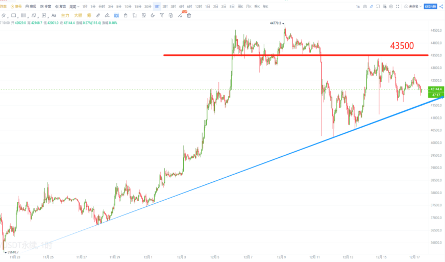 - 1-Hour Chart: After a short-term break below the 43500 level, it maintained oscillation. If the rebound does not break this resistance, there is still a downward trend.