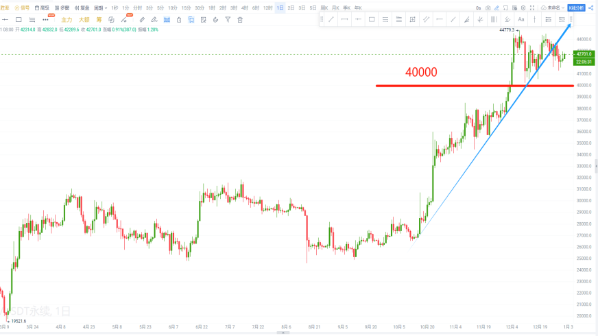 - Daily chart: After breaking through the $40,000 level, the price has maintained volatility. If the later pullback does not break, there will still be an upward trend.
