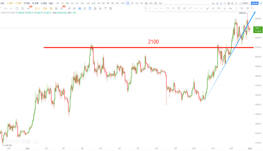 - Daily chart: After breaking through the $2,100 level, there was some volatility. If the later adjustment does not break, there will still be an upward trend.