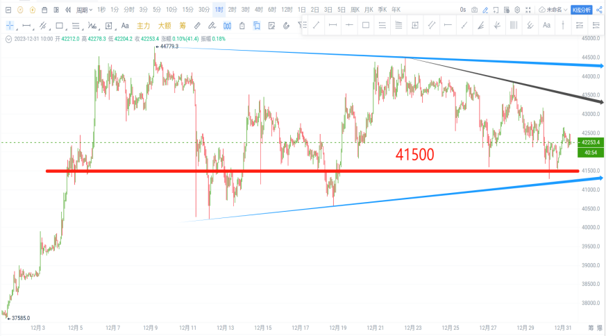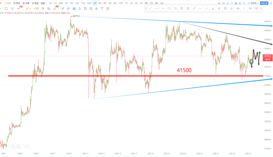 - 1-hour chart: After a short-term decline testing the $41,500 level, there was a rebound. If the later pullback does not break this level and the blue upward trend line, there will still be an upward trend.