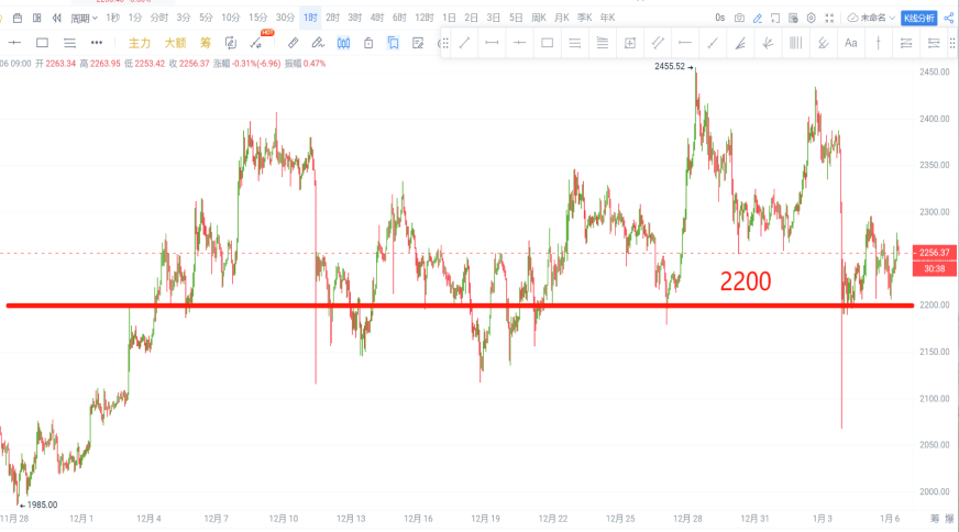 1. 1-hour chart: After a short-term dip to the $2,200 level, there was a rebound. If the subsequent pullback does not break this support, there will continue to be an upward trend.