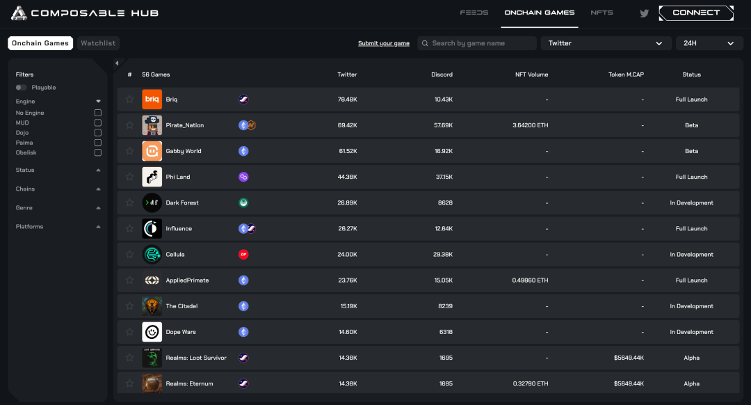 Finally, let's also introduce the emerging full-chain game aggregators/publishing platforms. Currently, due to the very early stage of full-chain games, the number of playable full-chain games on the market is extremely limited. According to data from Composable Hub, including alpha, beta, and fully launched games, the number of playable games does not exceed 30.