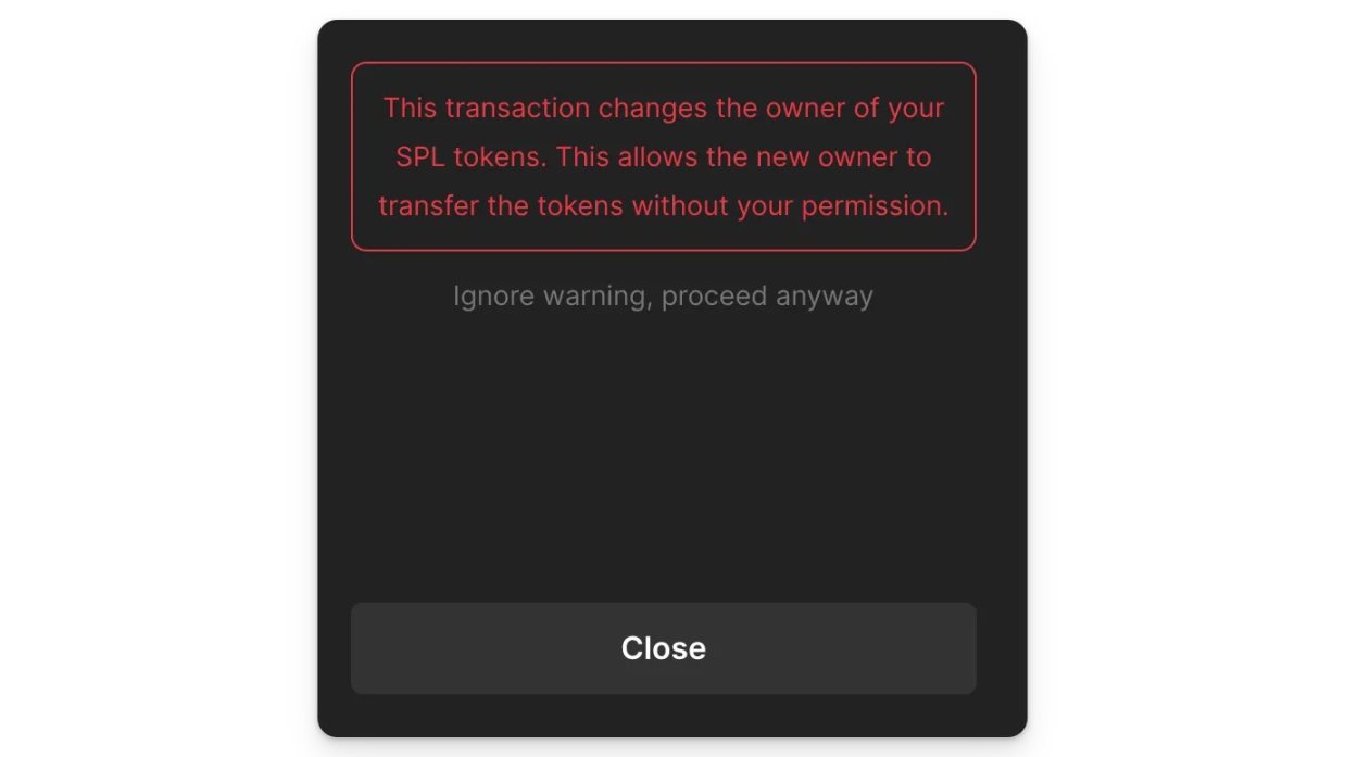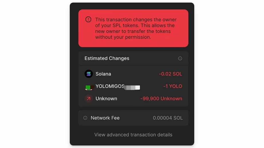 - Increase Security Awareness: Always maintain a high level of vigilance for any cryptocurrency-related transactions. Understand common methods of Solana phishing attacks, such as inducing token transfers, transferring token account ownership, and deceiving transaction signatures.