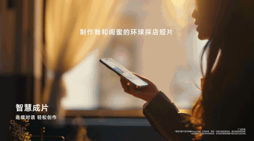 If you want to edit a video, just say a few words to the intelligent assistant, and the phone can automatically select the characters and scene materials you mentioned from the local gallery, edit them, add music, and generate a clip;