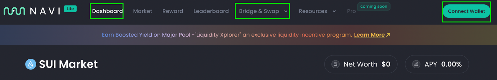 - In addition to lending functions, Navi Protocol also supports cross-chain functionality, click [Bridge & Swap]