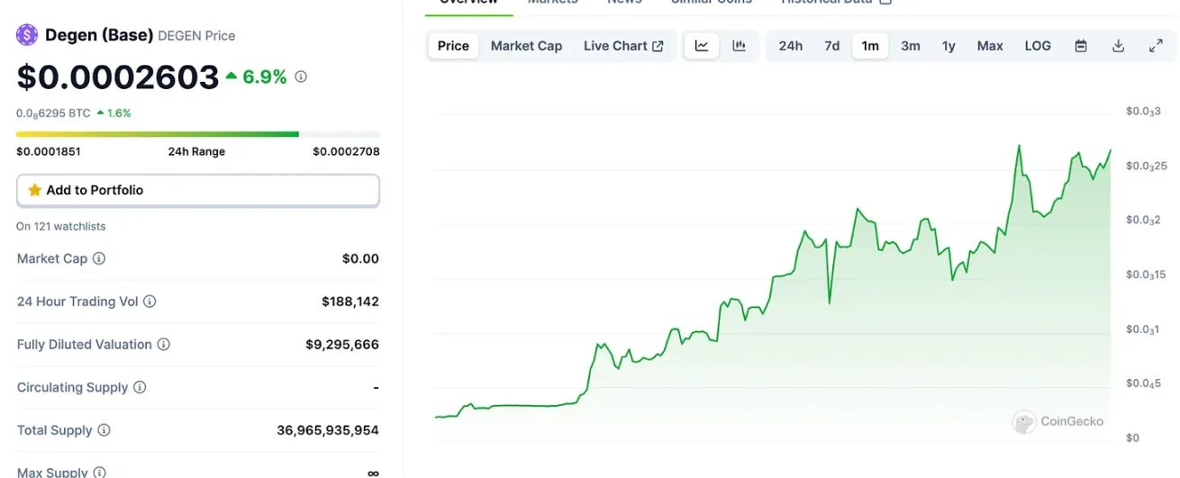 Finally, let's take a look at $DEGEN's market performance.