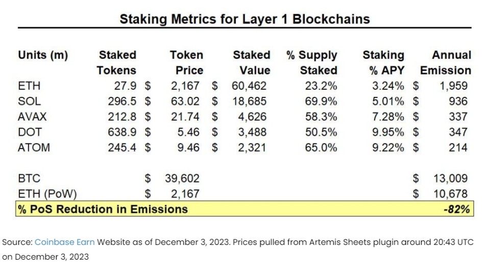 Staking drive for dYdX and Celestia: dYdX's new products will return its fees to token holders, which should drive staking rates comparable to other L1/Cosmos blockchains. Currently, over 16 million dYdX tokens have been staked. Celestia (TIA) will require a strong validator set to ensure the security of its data availability layer, which may similarly drive high staking rates.