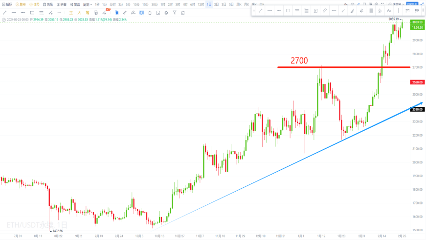 The future trend saw a slight pullback without breaking below the 2870 level, followed by a rebound, reaching a high of 3055.