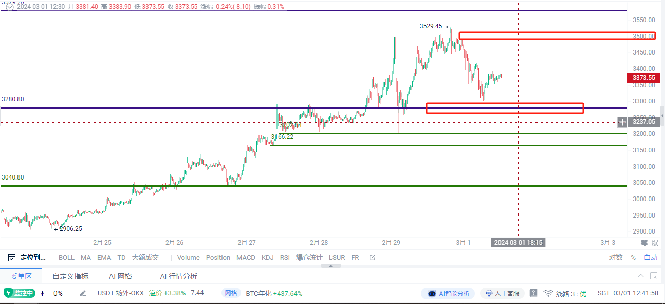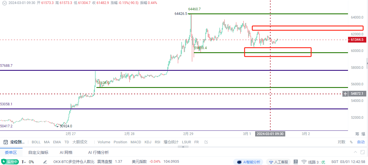 Tracking real-time hotspots in the currency circle, seizing the best trading opportunities. Today is Friday, March 1, 2024, and I am Yibo! We do not predict trades, but actually observe market fluctuations (narrowing, diffusion), structure (market batch structure), emotions (external market stocks, US dollars, etc.). As a trader, you (through trading) affect prices, and prices also affect your emotions and behavior as a factor.