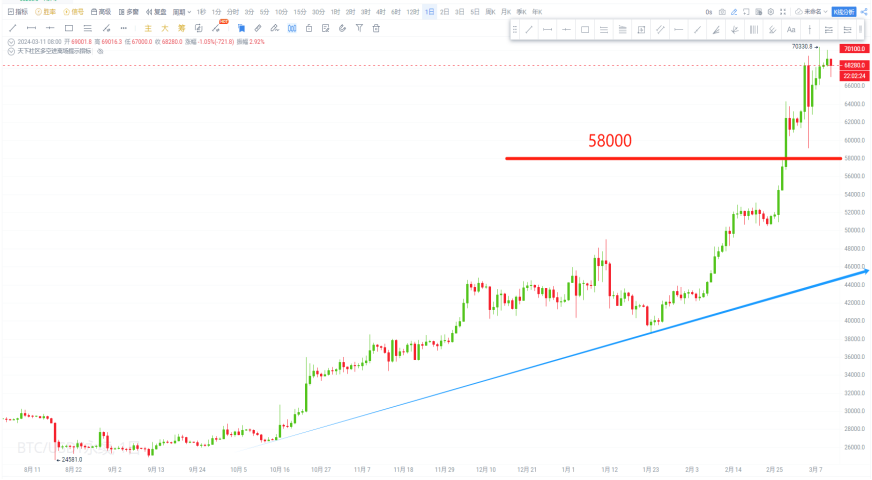- Daily Chart: After breaking above the 58,000 support level, there was a pullback. If the pullback does not break this support in the future, the upward trend will continue.