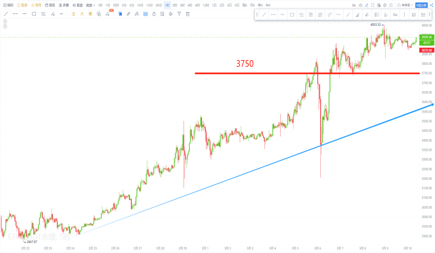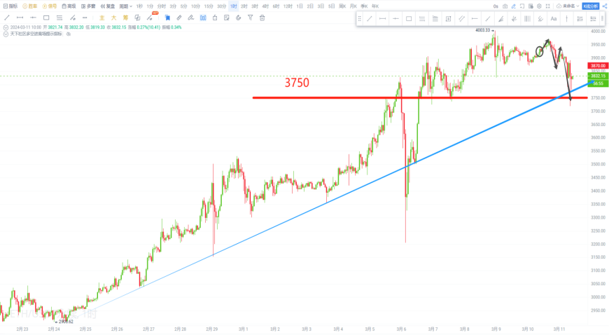 The future trend rebounded after a pullback did not break the 3,750 support, reaching a high of 3,970.