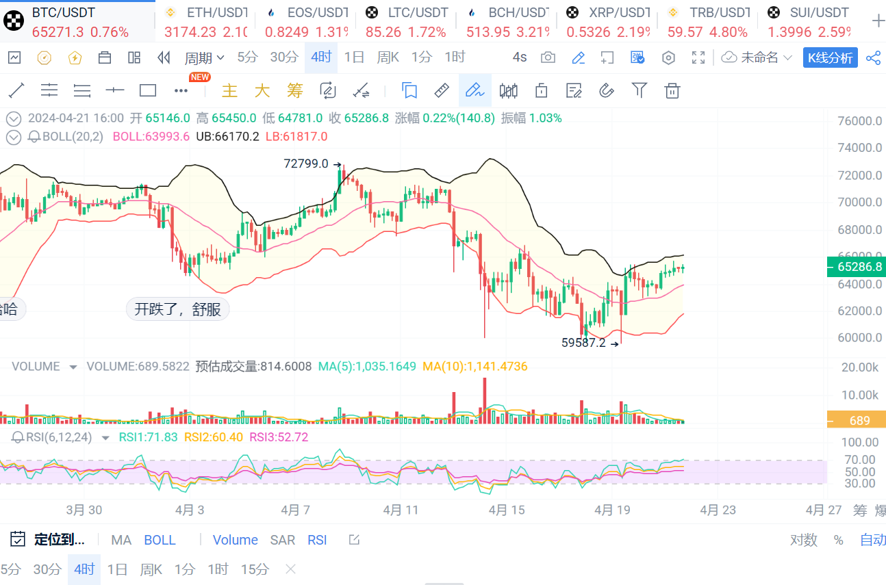 BTC: On the 4-hour chart, the price continues to oscillate above the middle track of the Bollinger Bands, with a stable trend as the main focus.