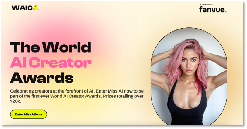 The inaugural "AI Miss World" beauty pageant is jointly launched by the social networking site Fanvue and the World Artificial Intelligence Creator Award (WAICA). Fanvue is a subscription platform hosting virtual models.