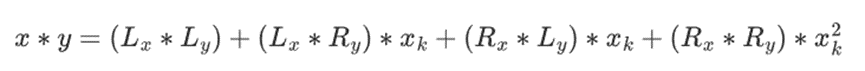 However, in binary fields built using tower structures, this method does work. The reason is their separability: what happens on each segment when you multiply a large value by a small value stays on each segment. If we multiply 1100101010001111 by 11, this is the same as the first time we split 1100101010001111, resulting in: