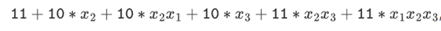 We can represent these numbers as lists of bits. For example, 1100101010001111. The first bit represents multiples of 1, the second bit represents multiples of x0, and then the subsequent bits represent multiples of the following x1 numbers: x1, x1x0, x2, x2x0, and so on. This encoding is nice because you can factorize it: