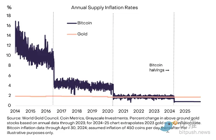 Figure 3: Bitcoin's inflation rate is lower than that of gold