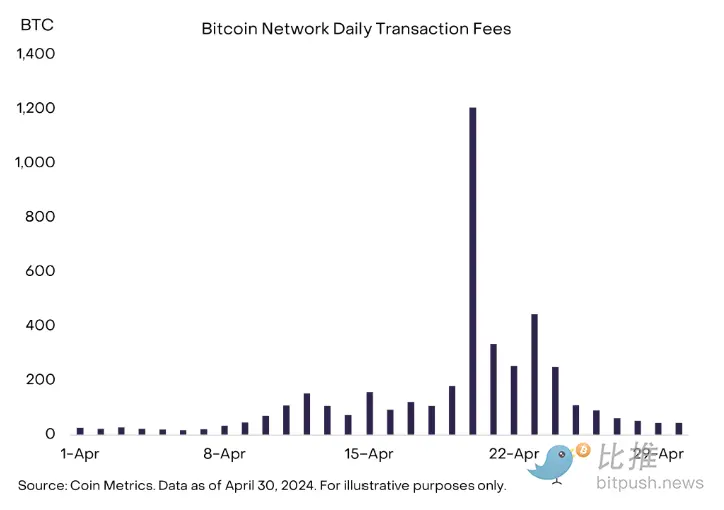 Figure 4: Bitcoin transaction fees surged before and after the halving