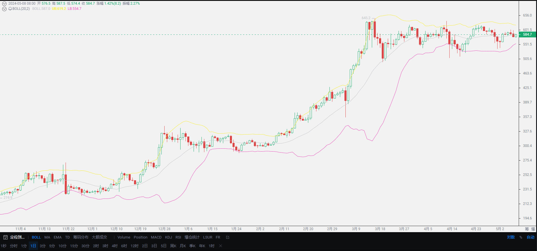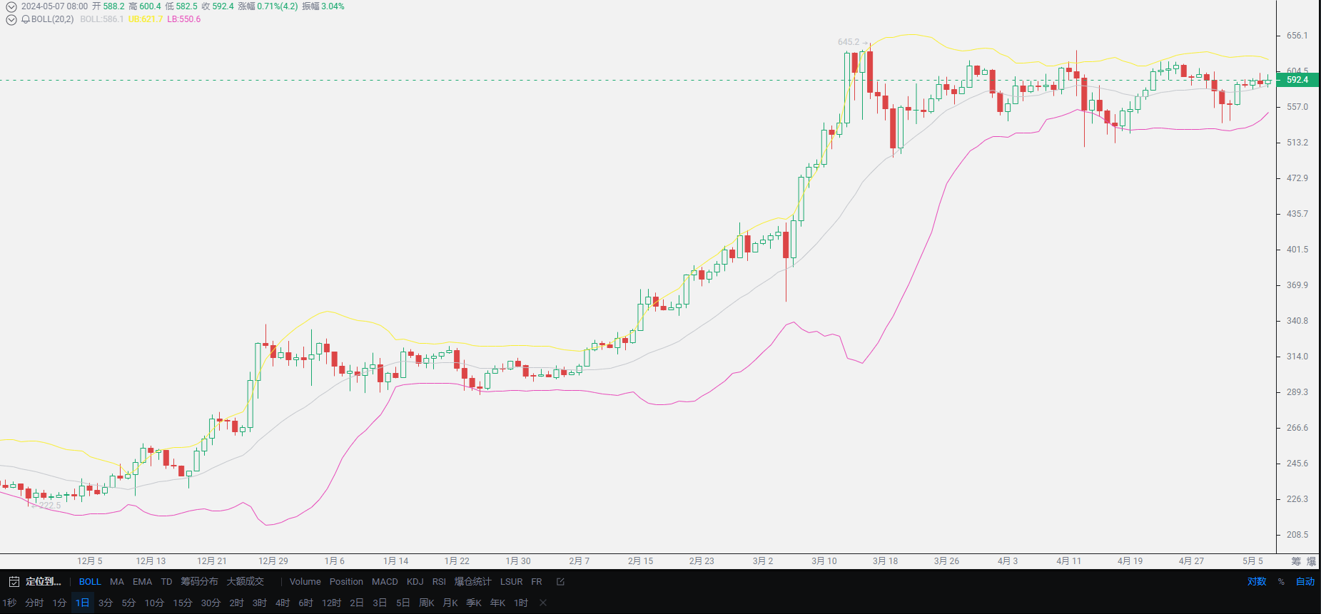 At this point, Lao Cui wants to remind everyone not to focus on absolute lows. No one can directly enter the position near 56000, and the current capital is also unable to control this position. When it reaches the position you want, long positions can be entered. In the short term, the trend is likely to revolve around the short side, but in the medium to long term, the advantage of the long side is still very obvious. Those who are observant have probably seen that the USDT price has already rebounded to around 7.2, maintaining the operation around 7.2, coupled with the inflow of large funds, it is expected that May will usher in a new wave of growth, provided that the US does not throw any curveballs.