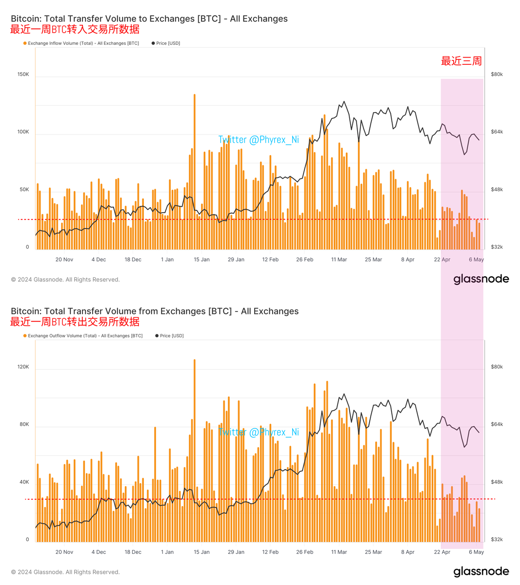 So, I happened to find this data today and discovered that the data in the past two weeks is indeed quite "bearish." It is clear from the transfer data in and out of the exchange that the data of the past three weeks interacting with the exchange is at a relatively low level in the past six months, especially the data of the past two working days, which is the lowest daily transfer data in and out of the exchange in the past year.