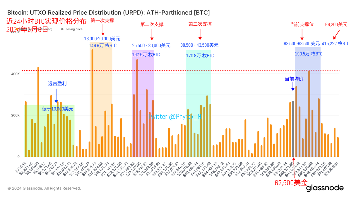 Currently, the profit chips below $60,000 have been almost washed out. The investors who made profits last week between $56,000 and $60,000 have mostly left, and the remaining turnover is getting lower and lower. However, the turnover between $63,000 and $65,000 continues to be high, and these short-term investors are the main reason for the current price fluctuations.