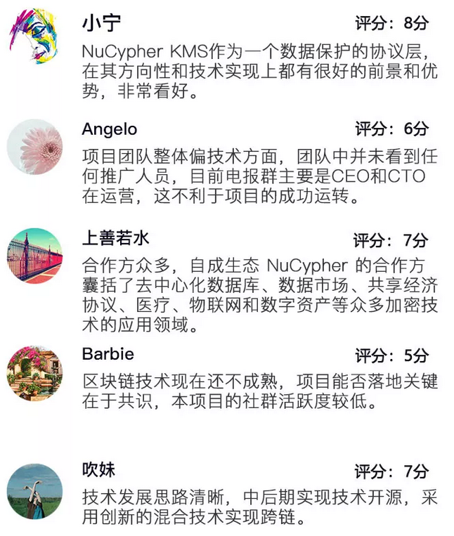 虽然项目方在2015年就开始了项目的研发,但整体进度比较慢。不过NuCypher合作方有将近11个,囊括去中心化数据库,医疗领域,物联网,数字资产等,其中不乏Bluzelle、Origin Protocol 这些近期的热门项目。可以说NuCypher在技术实用性和生态建设上,有着很高的认可度和优势。