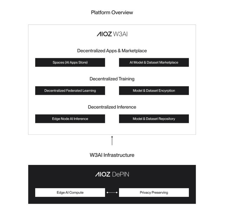 In its move towards the AI track, a key initiative of AIOZ is W3AI --- a dual-layer architecture encompassing infrastructure and applications.