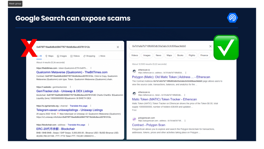 Checking the token address in Google search
