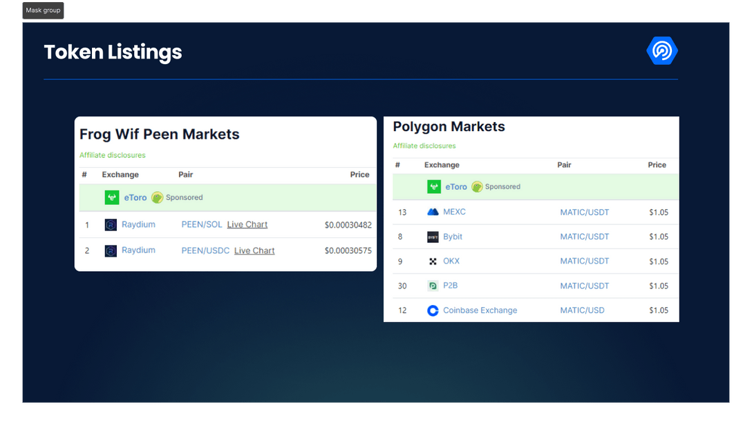 However, tokens listed only on DEX are a riskier investment, and you are more likely to encounter scams. The image on the left is a token only used on DEX, while the image on the right is a token that can be used on multiple CEX.